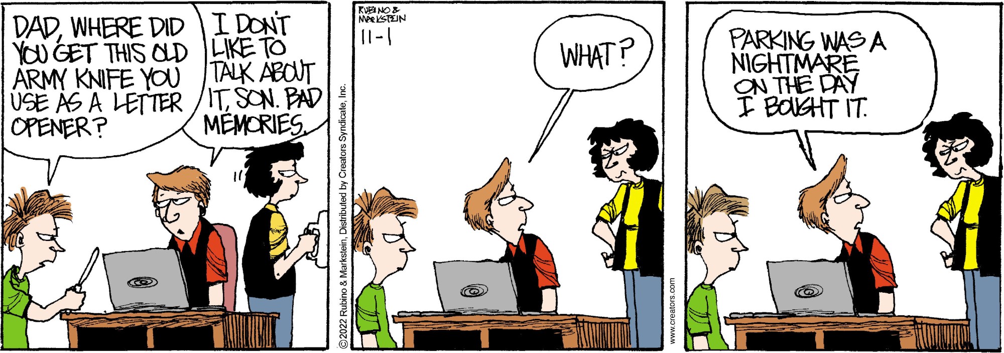 "Daddy’s Home" is a contemporary family comic with an emphasis on the role of the modern father. No other cartoon feature examines domesticity from this uniquely male perspective while remaining universally appealing to both genders. Through the eyes of a stay-at-home-dad, "Daddy’s Home" casts a unique light on everyday situations. With biting sarcasm and sharp wit, Peter and a cast of supporting characters navigate the turbulent waters of modern family life. Creators Syndicate