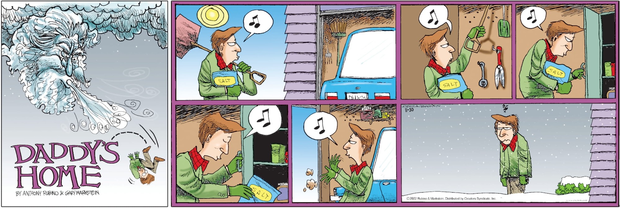 “Daddy’s Home” is a contemporary family comic with an emphasis on the role of the modern father. No other cartoon feature examines domesticity from this uniquely male perspective while remaining universally appealing to both genders. Through the eyes of a stay-at-home-dad, “Daddy’s Home” casts a unique light on everyday situations. With biting sarcasm and sharp wit, Peter and a cast of supporting characters navigate the turbulent waters of modern family life.