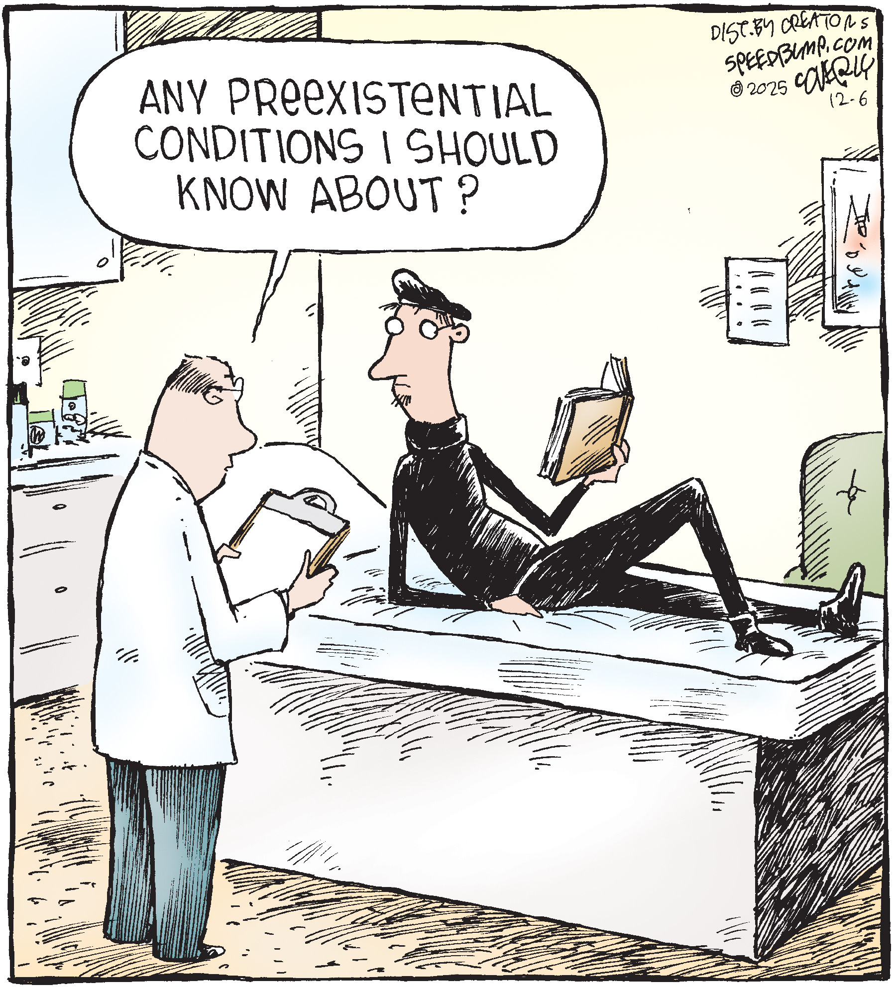 Dave Coverly admits there is no overriding theme, no tidy little philosophy that precisely describes what “Speed Bump” is about. “Basically,” he says, “if life were a movie, these would be the outtakes.”