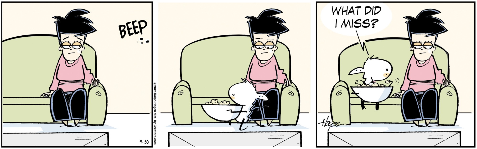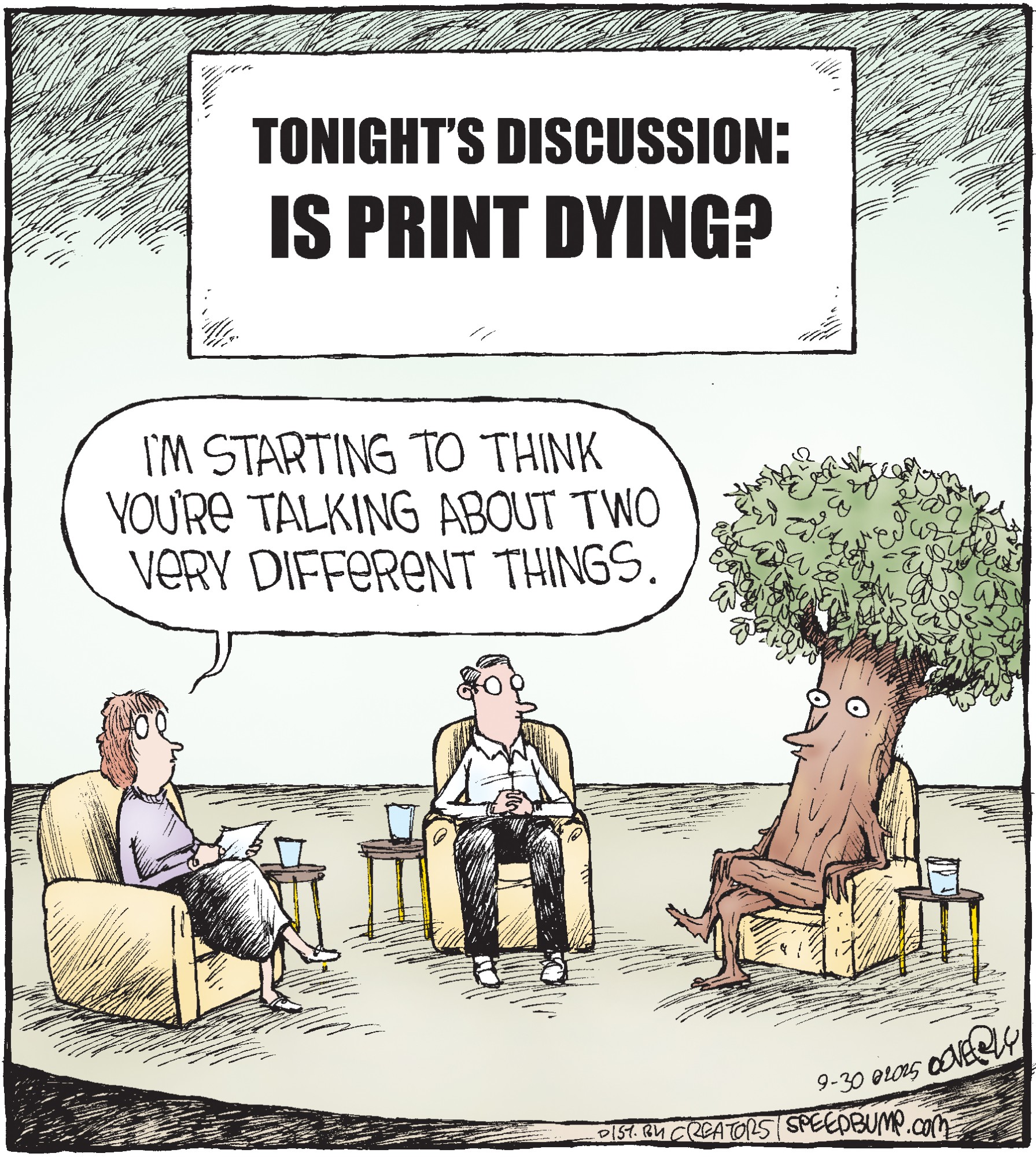 Dave Coverly admits there is no overriding theme, no tidy little philosophy that precisely describes what "Speed Bump" is about. "Basically," he says, "if life were a movie, these would be the outtakes." Creators Syndicate