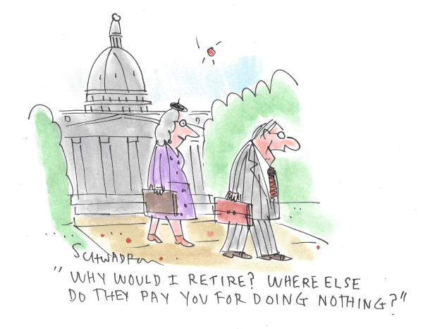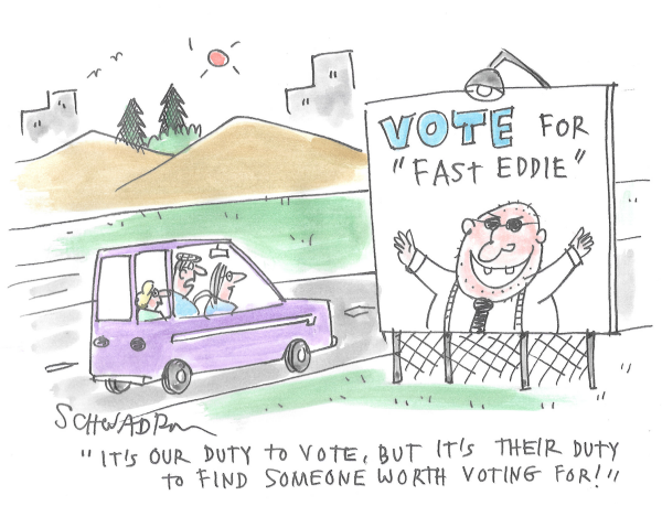 Harley Schwadron is a cartoonist in Ann Arbor, Michigan. His cartoons have appeared in many major publications, including Barron’s, Harvard Business Review, Punch, Playboy, American Legion, New York Times, and Readers Digest. Many of Harley's cartoons deal with business, politics and financial investing. He has illustrated some 50 books. Cagle Cartoons