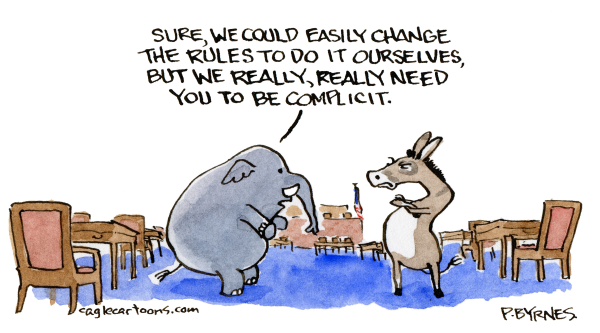 Pat Byrnes is a long-time cartoonist for The New Yorker, illustrator, humorist, and winner of the National Cartoonist Society’s Silver Reuben. Previous careers include voice actor, ad copywriter, and aerospace engineer.  Cagle Cartoons
