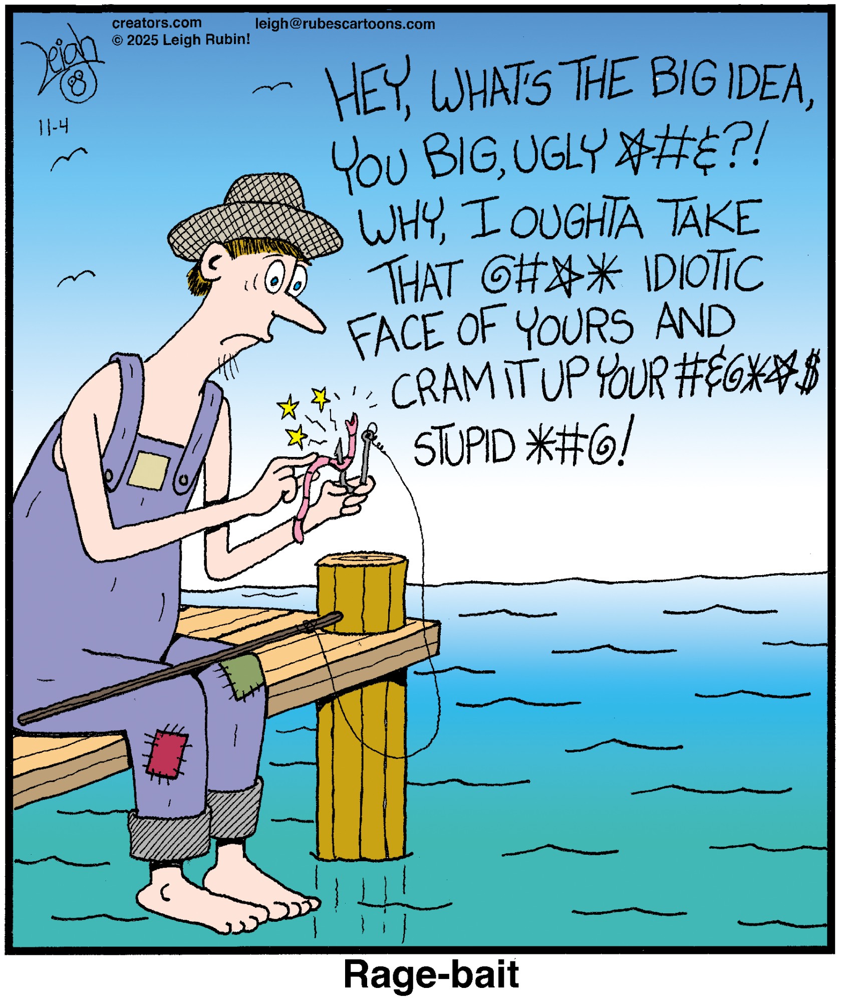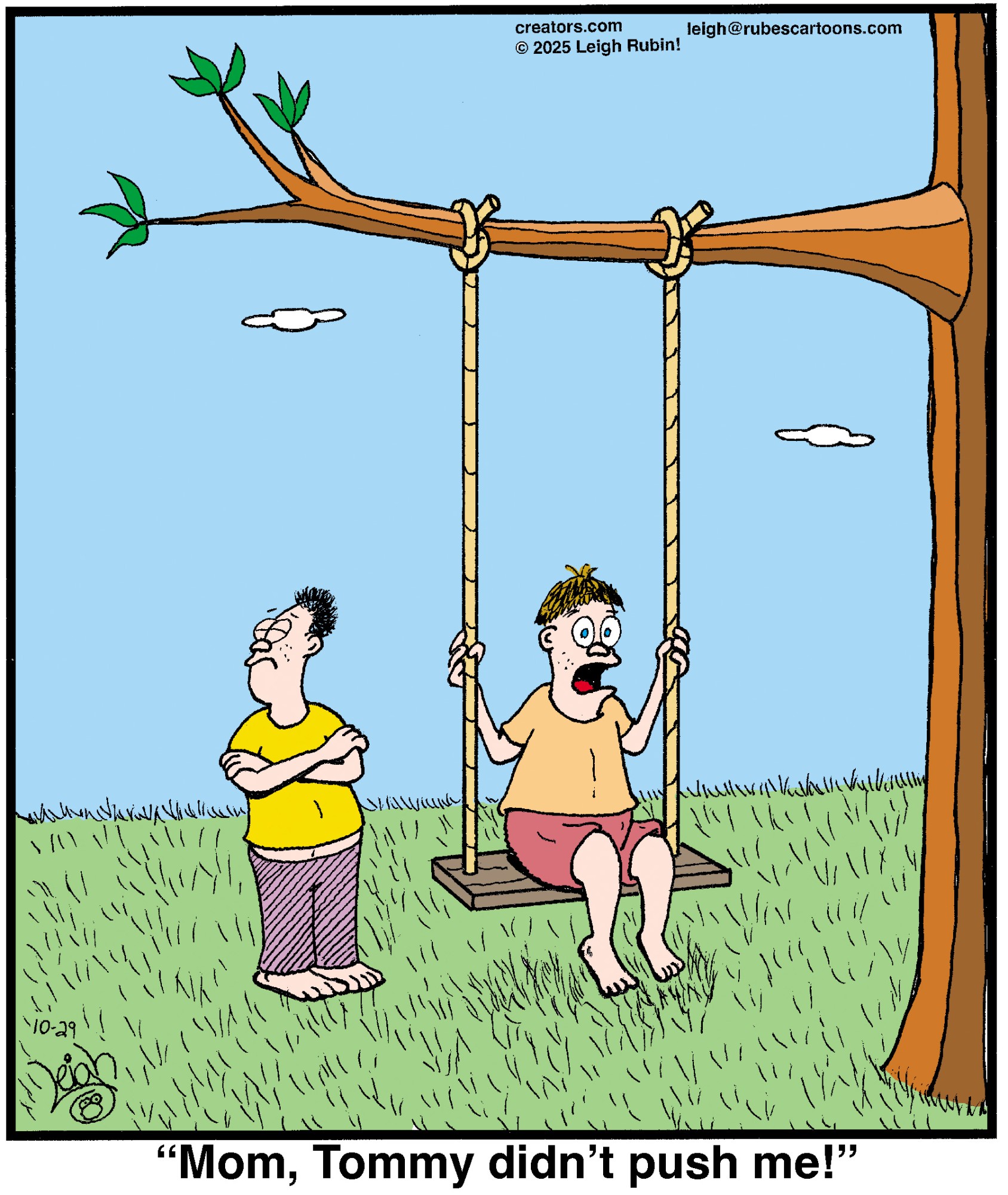 Talking cows, less-than-bright kids, and multiple varieties of flora and fauna make their appearance in the witty offbeat cartoon panel "Rubes" by Leigh Rubin. Rubin’s hilarious cast of characters and absurd view of the world have made "Rubes" a favorite with readers everywhere. Creators Syndicate