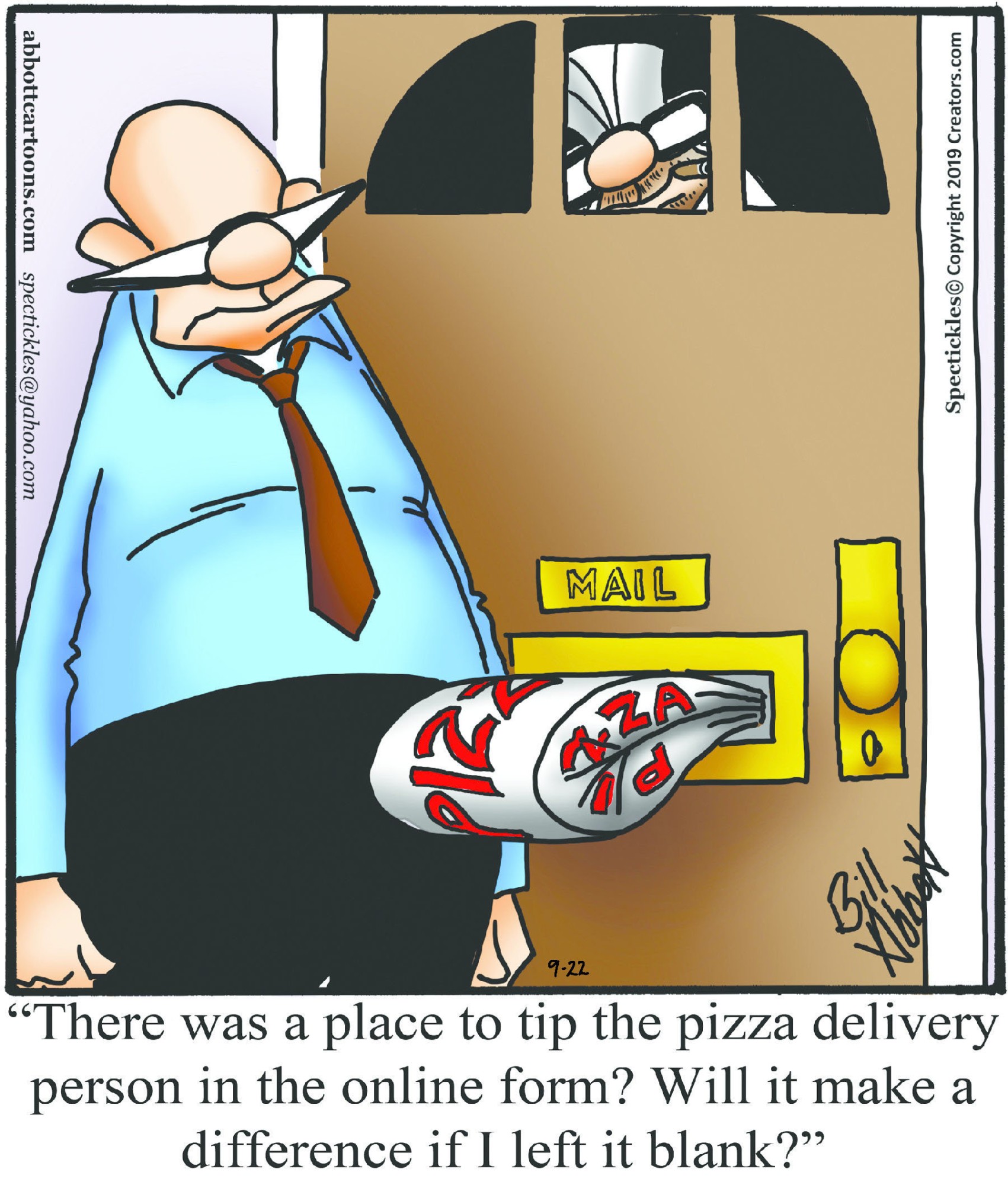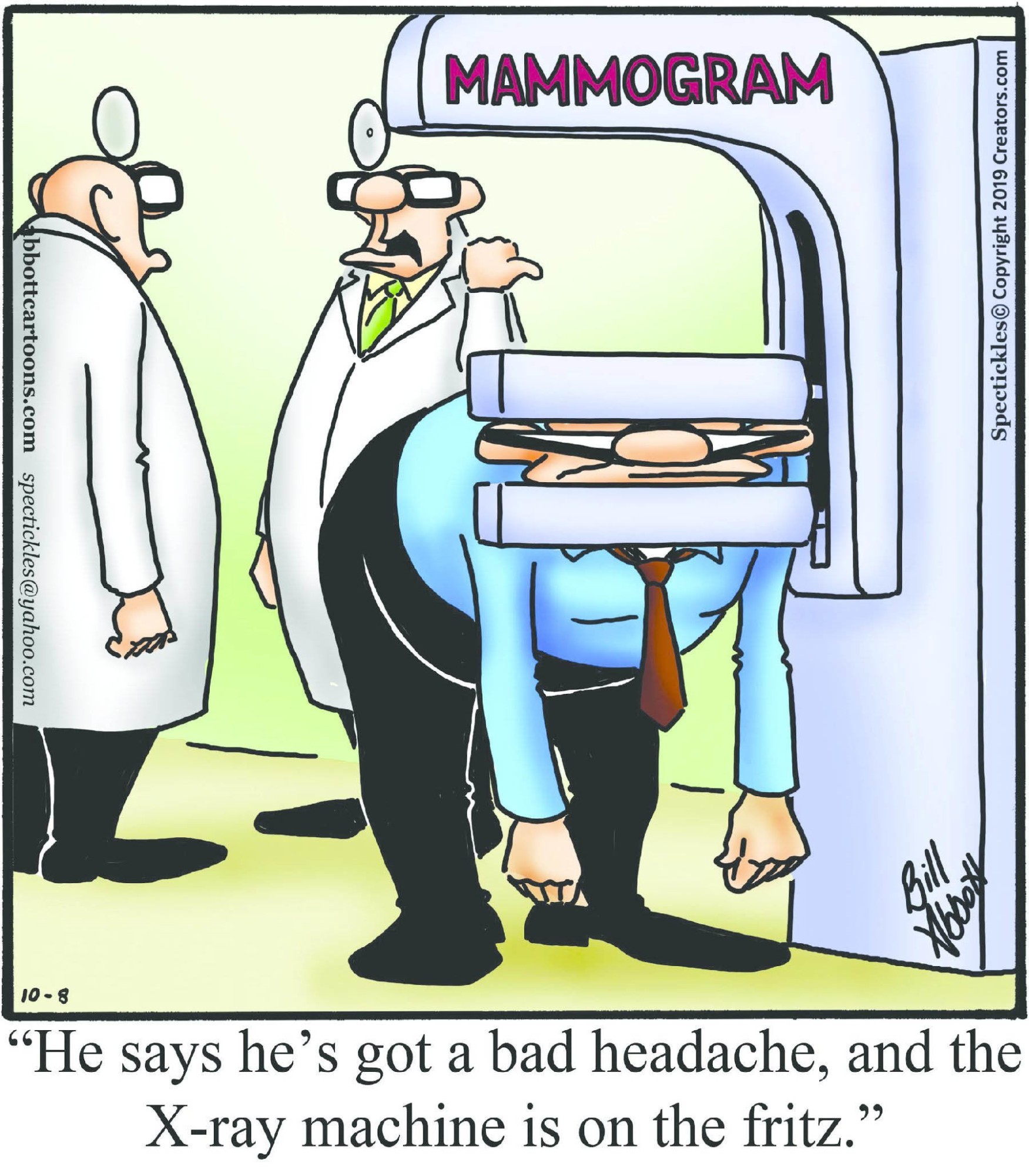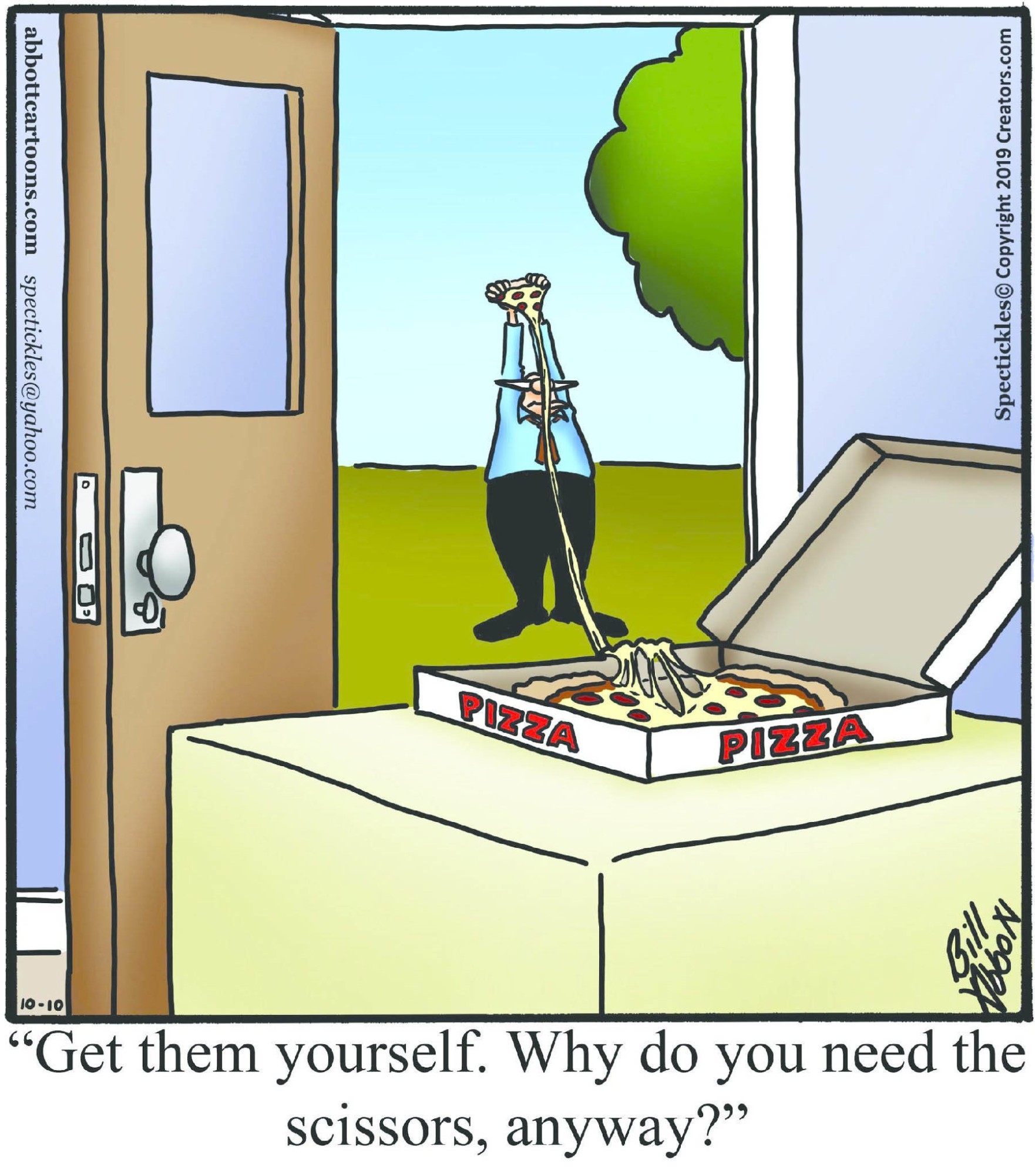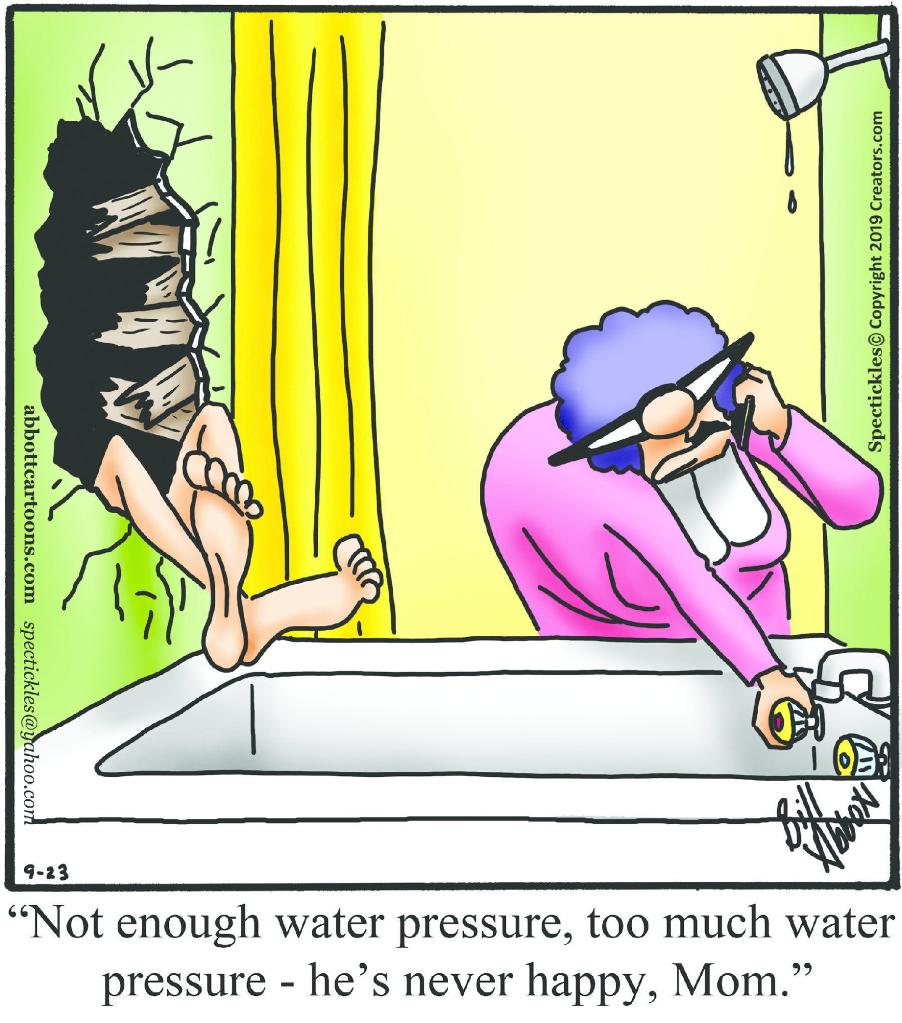 Spectickles, a cartoon primarily about a married couple with, to put it mildly, communication challenges, is an amalgamation of physical traits that author Bill Abbott finds humorous: the deadpan expression and gravity-tugged flesh of Walter Matthau, the powerful presence of Ethel Merman, the glasses of his great-grand-parents and a host of other subtleties. Creators Syndicate