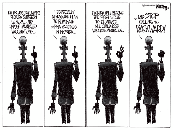 Bill Day is a two-time winner of the RFK Journalism Award in Cartooning, and his cartoons are syndicated internationally by Cagle Cartoons. He is currently the editorial cartoonist for FloridaPolitics.comCagle Cartoons