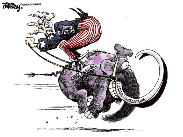 Bill Day is a two-time winner of the RFK Journalism Award in Cartooning, and his cartoons are syndicated internationally by Cagle Cartoons. He is currently the editorial cartoonist for FloridaPolitics.comCagle Cartoons