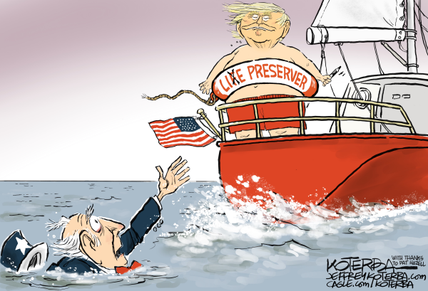 After 31 years as the cartoonist for Nebraska's largest newspaper, Jeff suddenly found himself laid off. So he greatly appreciates the support of fans to keep drawing. Jeff's brilliant and moderate editorial cartoons are syndicated around the world and his original drawings have also flown aboard space shuttle Discovery. He's given Ted talks and is the lead singer, guitarist, and songwriter for the Prairie Cats, a swing and jump-blues band that has performed around the U.S. including the South by Southwest Music Festival. And he may be the most popular cartoonist with editors on all of Cagle.com. Cagle Cartoons